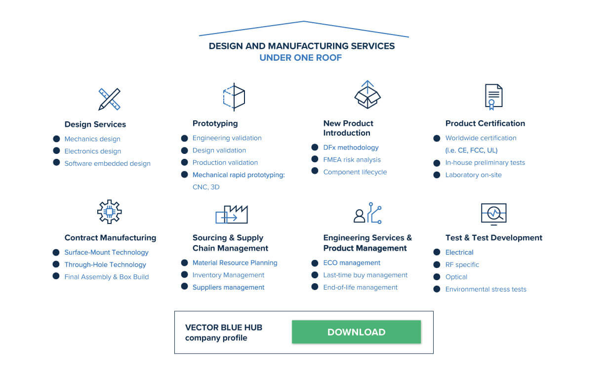 The mission to bring a final product to life can be very challenging. This is especially true when the story is continuously variable, driving the need to adjust the electronic design and manufacturing processes to suit the complexity of the customer’s product. At VECTOR BLUE HUB we can face up to this task - and not just as a manufacturer or design house. We are ready for all challenges in being your close partner in design and manufacturing services for electronic devices.